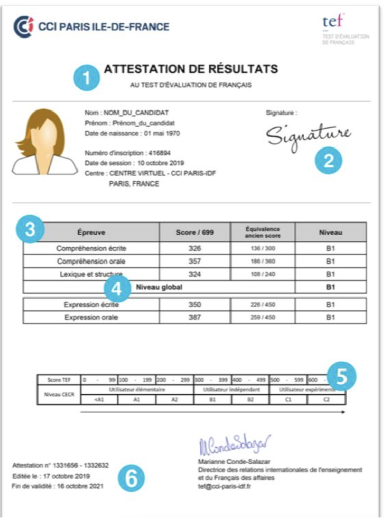 La CCI de Paris t’enverra tes résultats par courriel en format PDF. Tu recevras les résultats entre une semaine et 2 mois après ton passage. Elle précisra le score que tu as obtenu à chacune des épreuves. Pour connaître le niveau de compétence linguistique canadien (NCLC) correspondant à ton score, tu peux te réferer à ce Tableau de correspondance. L’attestation sera valable pendant 2 ans à compter de la date de l’examen.